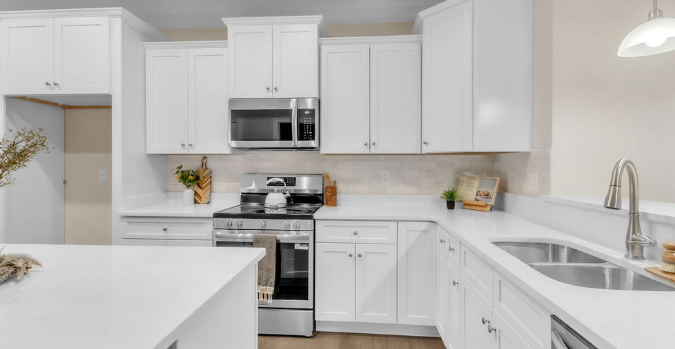 Modern Kitchen: Features elegant quartz countertops and a walk-in pantry for ample storage.